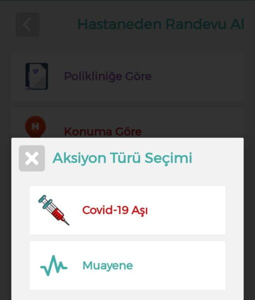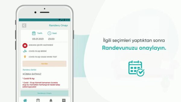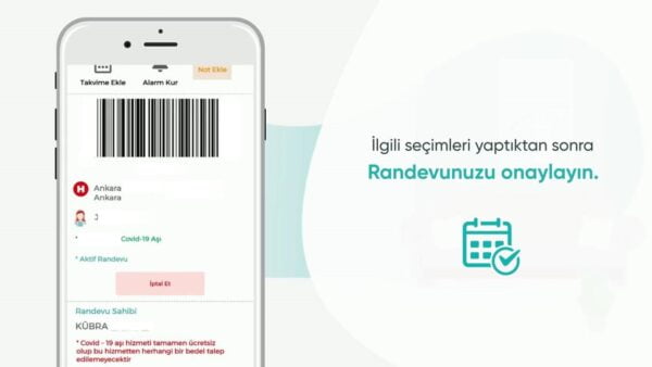 Televizyondan vatandaşlara aşı yapılacağı duyurulduğunda MHRS (Merkezi Hekim Randevu Sistemi), E Nabız veya cep telefonu kısa mesaj (SMS) ile randevu alınacaktır.